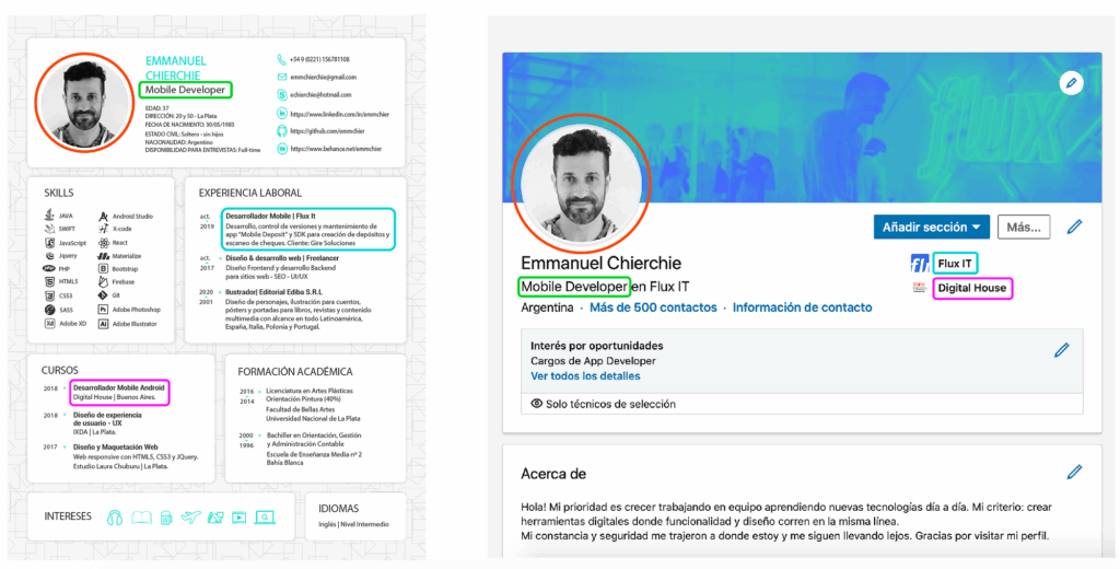 Ese titular tiene las palabras clave adecuadas, indica hacia dónde quiere llevar la persona su carrera y no exagera la verdad.