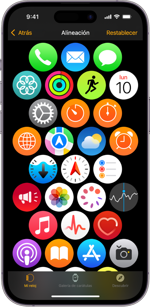 Quizás prefieras la vista de cuadrícula, pero quieres organizar mejor tus apps para saber dónde encontrar cada una. Puedes reorganizar el diseño desde tu reloj o desde tu iPhone. Probemos ambos métodos.